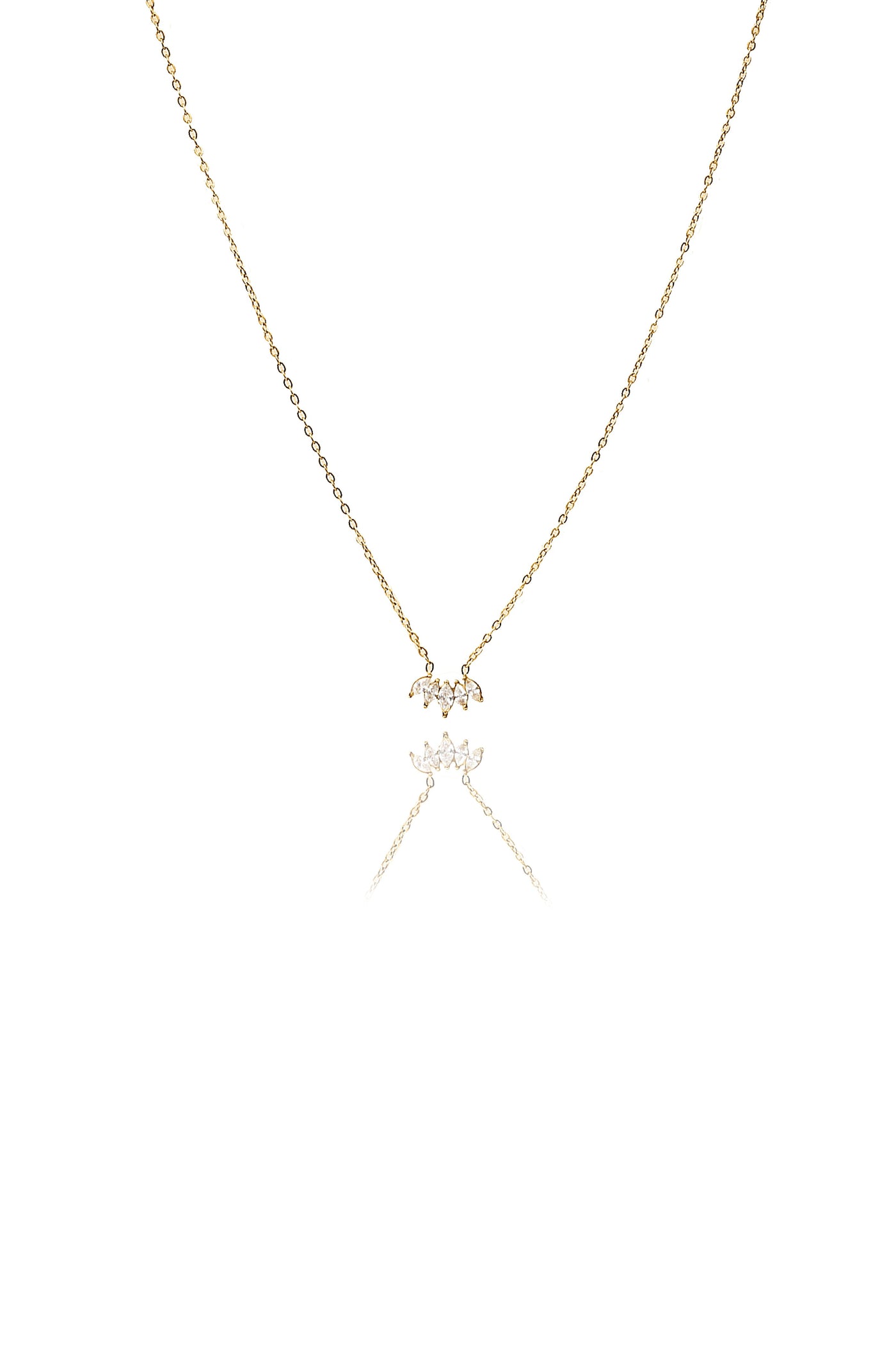 A touch of royalty in the most delicate form. This gold-toned chain features a cluster of marquise-cut crystals arranged like a tiny crown, adding just the right amount of sparkle to your neckline. Elegant, lightweight, and versatile – it’s your go-to piece for both work days and evenings out.