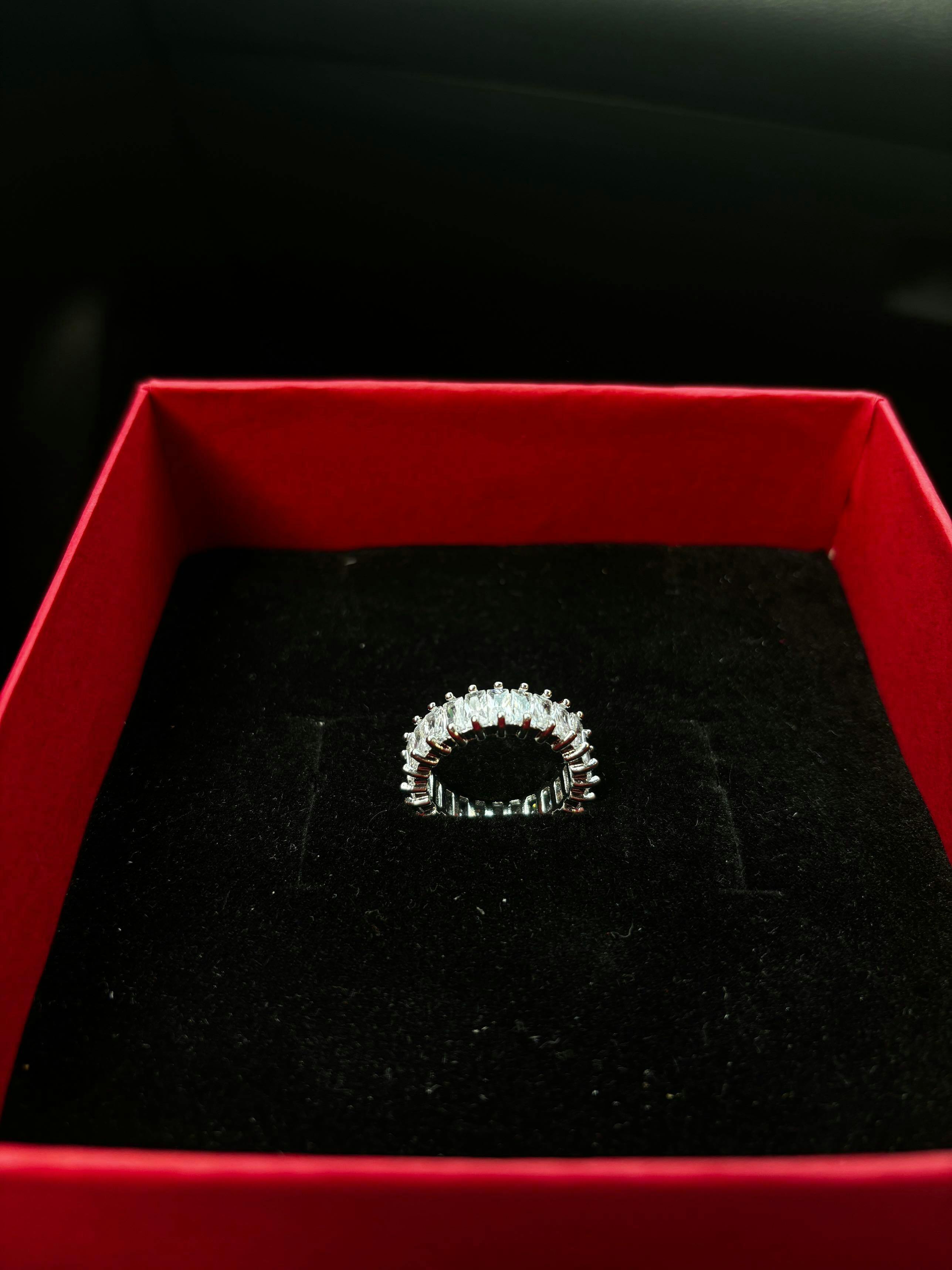 Named after the goddess of love and beauty, the Aphrodite ring is pure romance wrapped in brilliance. A continuous circle of dazzling stones catches the light from every angle, creating a halo effect that feels both ethereal and powerful. Crafted with precision and designed to be hypoallergenic, anti-tarnish, and waterproof so its sparkle lasts as long as your love for it.