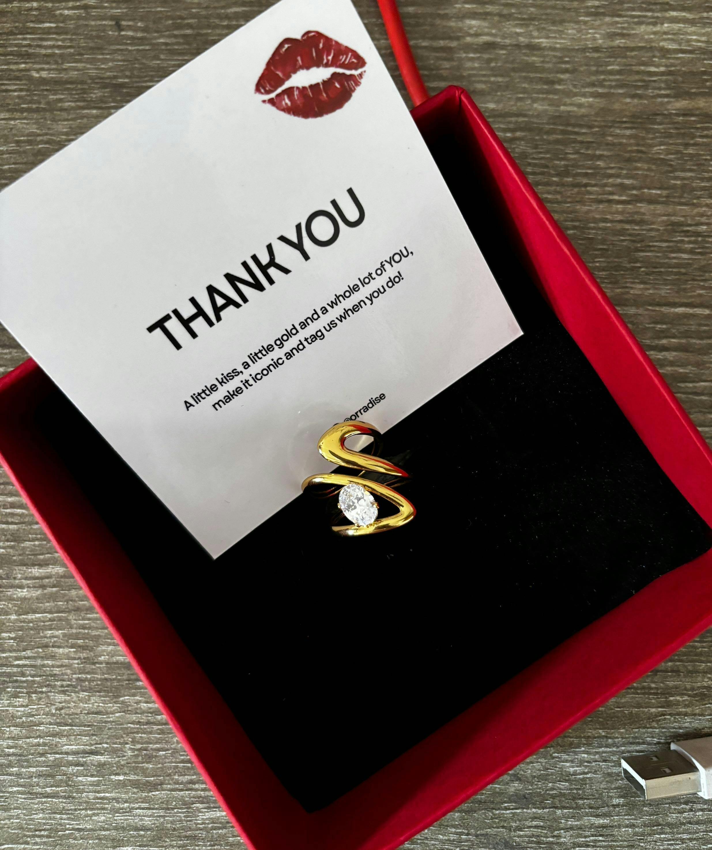 Crafted in a graceful looped design, this ring features a brilliant pear-cut crystal delicately set within gold-plated curves. Anti-tarnish, waterproof, and hypoallergenic, Lumira is not just jewelry it’s a timeless piece designed for everyday luxury. With its modern yet romantic silhouette, this ring strikes the perfect balance between elegance and statement style.