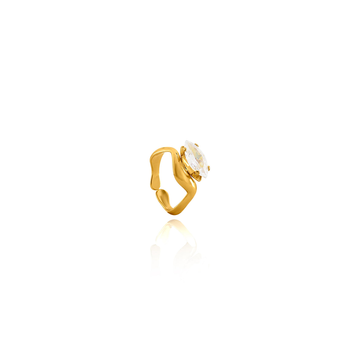 Meet Novara, the sculptural ring that redefines elegance. Crafted with fluid gold-toned curves and crowned with a brilliant marquise-cut stone, it strikes the perfect balance between bold artistry and timeless glamour. Designed in demi-fine quality, this ring is hypoallergenic, anti-tarnish, and waterproof, made to shine with you, every single day.