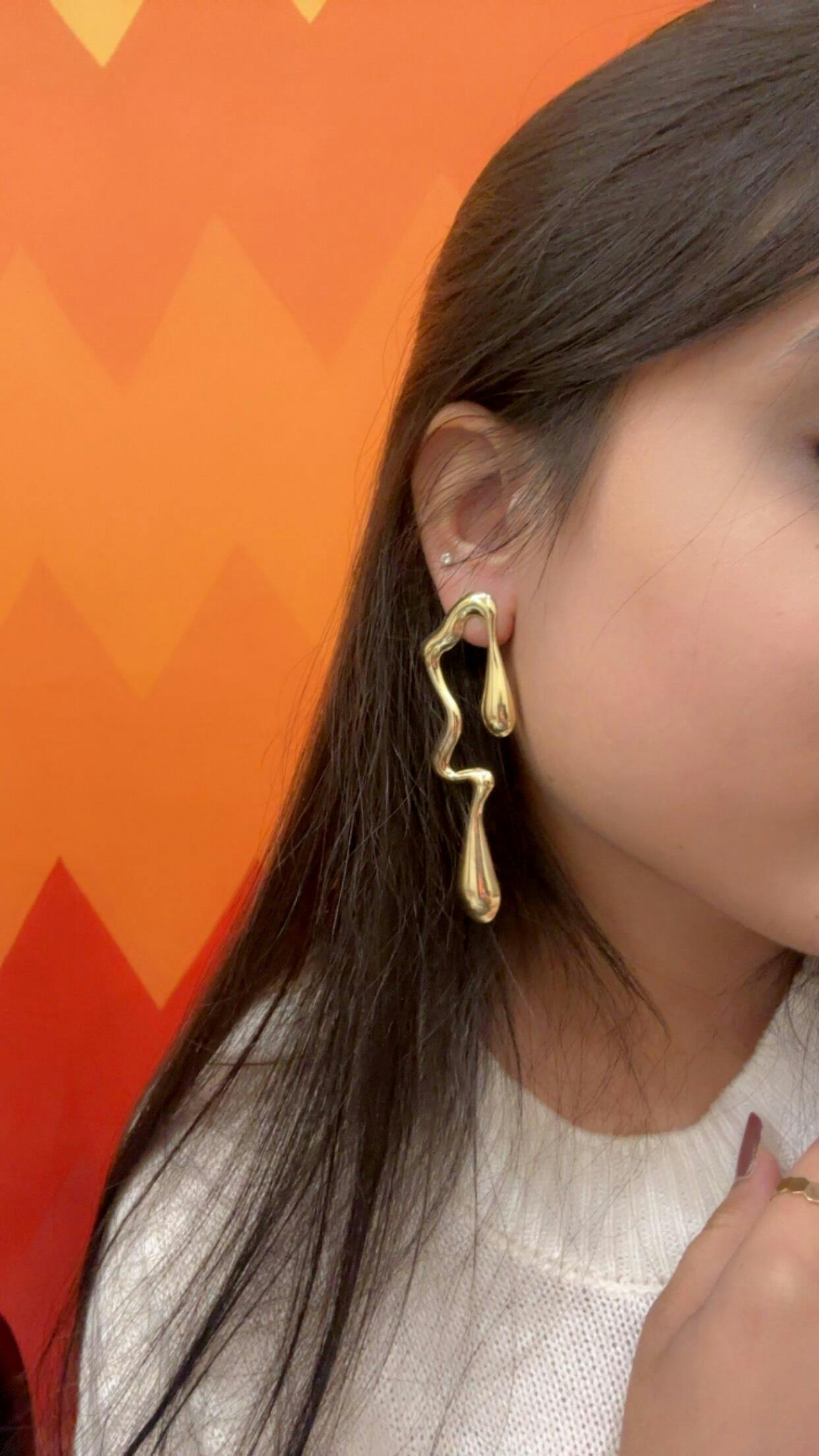 Meet your new conversation starter a molten, draped-in-gold statement earring that looks like it was poured straight from the sun. Its organic, free-flowing silhouette gives you that I woke up like this kind of chic, while the high-shine finish makes sure every head turns your way. Crafted for the girl who treats jewelry as her mood board bold, unapologetic, and a little unpredictable.