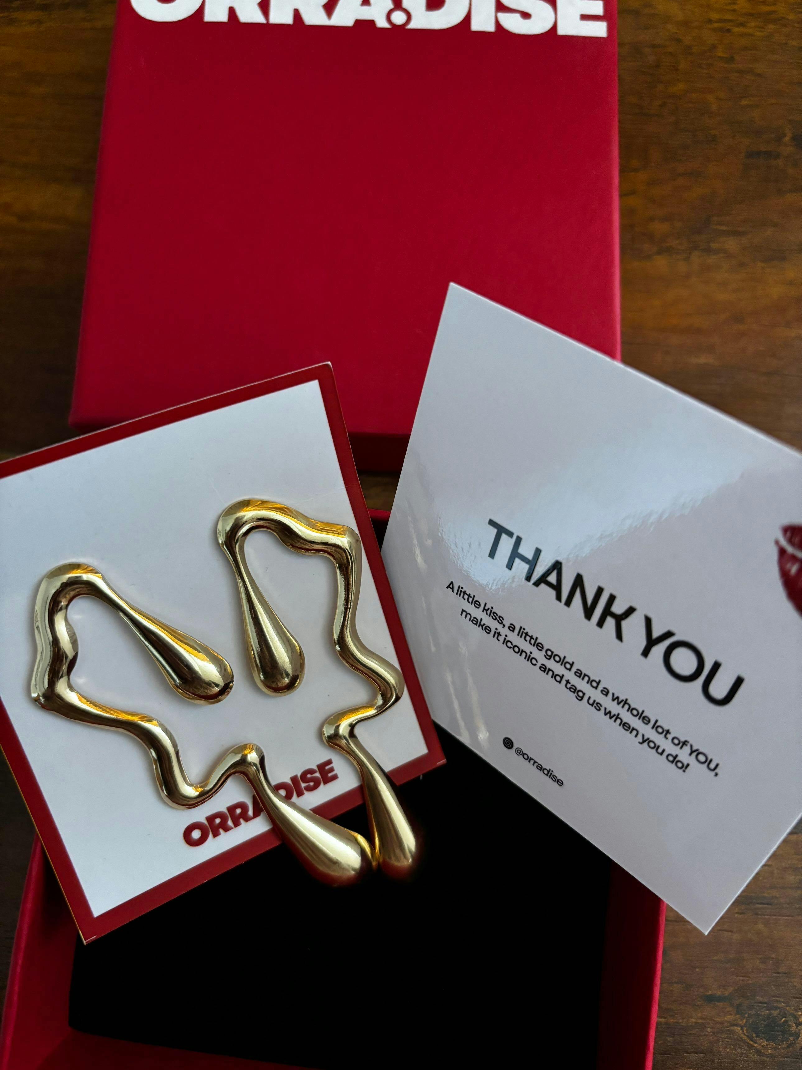 Meet your new conversation starter a molten, draped-in-gold statement earring that looks like it was poured straight from the sun. Its organic, free-flowing silhouette gives you that I woke up like this kind of chic, while the high-shine finish makes sure every head turns your way. Crafted for the girl who treats jewelry as her mood board bold, unapologetic, and a little unpredictable.